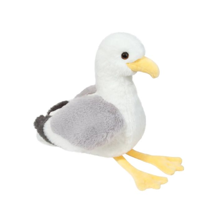From his vantage point aloft in the sky, Stewie the Soft Seagull stuffed animal can see all the boats in the harbor! Children below splash and play at the water’s edge with their families and Stewie hopes he might be able to convince some of the happy vacationers to part with some of their snacks. Cuddly and soft with just the right amount of pluck, this lifelike plush sea bird is so appealing, he’s sure to come away with something! Stewie features floppy legs and feet along with realistic colors and markings that will bring to mind sunny days at the seashore. Lure him to you with a cracker or bit of cheese and capture this happy go lucky symbol of the summer for yourself, Stewie’s good looks and bright eyed charm are sure to bring a smile to your face!