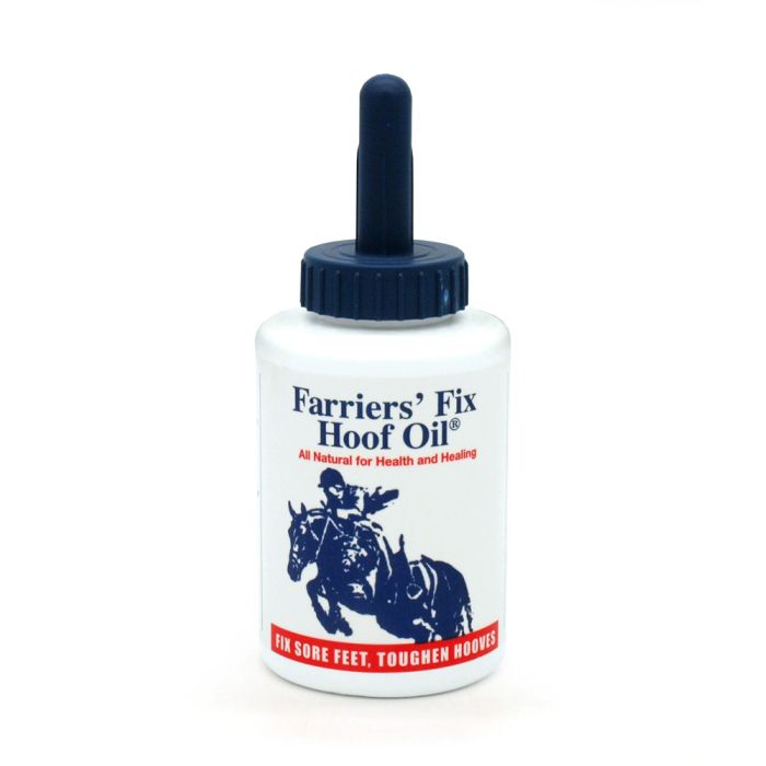 Farriers' Fix Hoof Oil is a therapeutic, topical treatment that benefits the entire hoof from the coronary band to the sole and frog. Farriers' Fix is made with only high quality, natural ingredients that provide vitamins A, D & E – all essential for good quality hooves. This unique blend of all natural ingredients penetrates the hoof capsule to draw out soreness and allow the hoof to breathe. There are no fillers in this hoof oil, each ingredient used serves a specific purpose. Competitors can also be assured that Farriers' Fix Hoof Oil has tested negative under FEI guidelines.