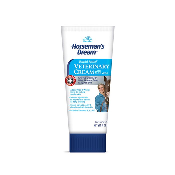 Horseman's Dream veterinary cream is an excellent and effective first aid cream for a variety of skin conditions including minor wounds, scrapes, burns, and sunburns. The soothing, aloe-based cream readily absorbs into skin helping to provide rapid relief for your horse.