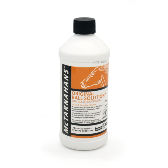 McTarnahans Ball Solution is recognized worldwide and has been used for over 60 years. This excellent counter irritant is used for the relief of muscle soreness, curbs, splints, ringbone, cracked heel, bowed tendons and big knees due to extreme overexertion. Horses do not build up a resistance to it with continual use.