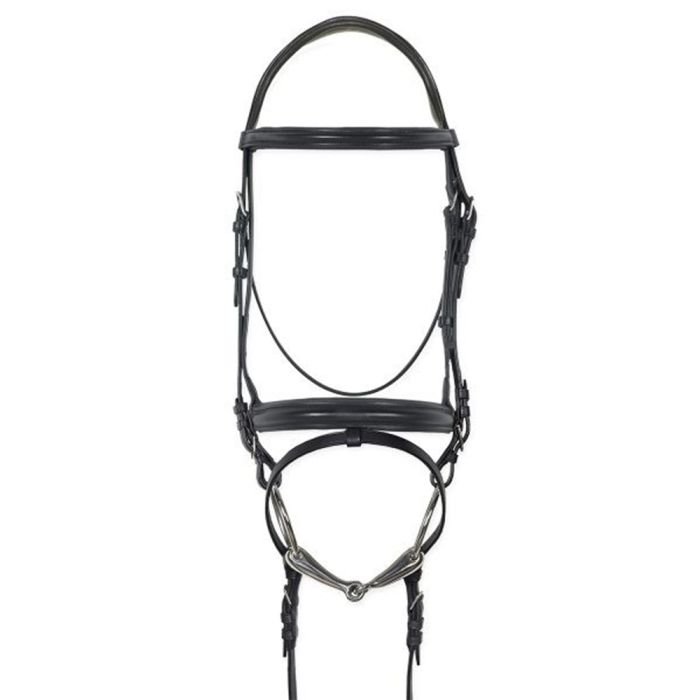 The ultimate in comfort in this hand finished Italian leather features Ovation’s exclusive “Comfort Crown”. This snaffle bridle is padded and comes with a flash and 5/8" rubberized reins.
