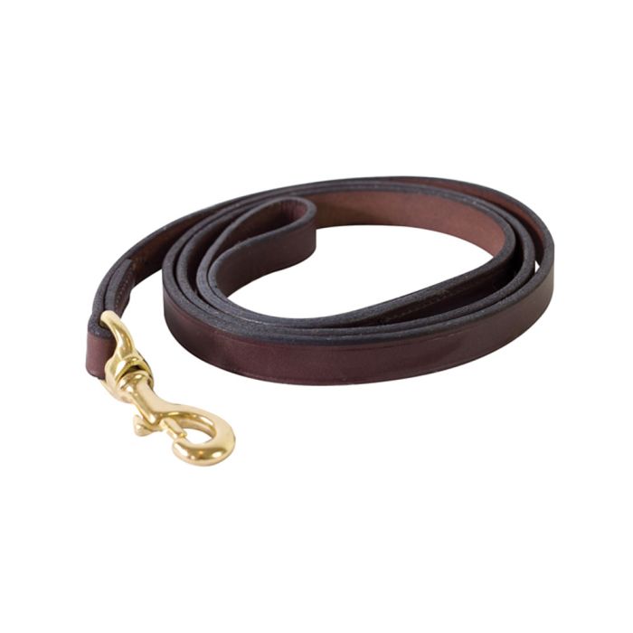 Plain leather dog leash with heavy duty snap. Size is 3/4" x 5'. Made in USA.