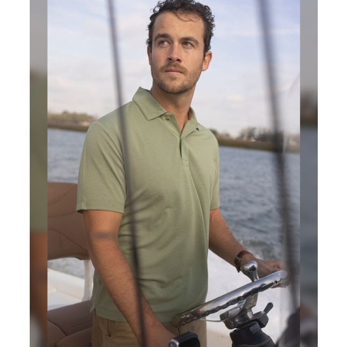 The Coastal Polo is a men’s shirt that balances classic style with modern performance. It is made from an airy knitted poly/cotton fabric that is breathable, quick-drying, and moisture-wicking with light stretch. The shirt has the moisture regulation you want on the water and the performance you need on the course, with a style suited for everyday wear.